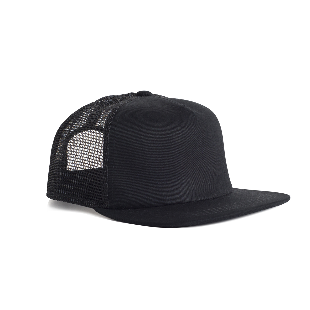 100% cotton front and peak, 100% polyester mesh back