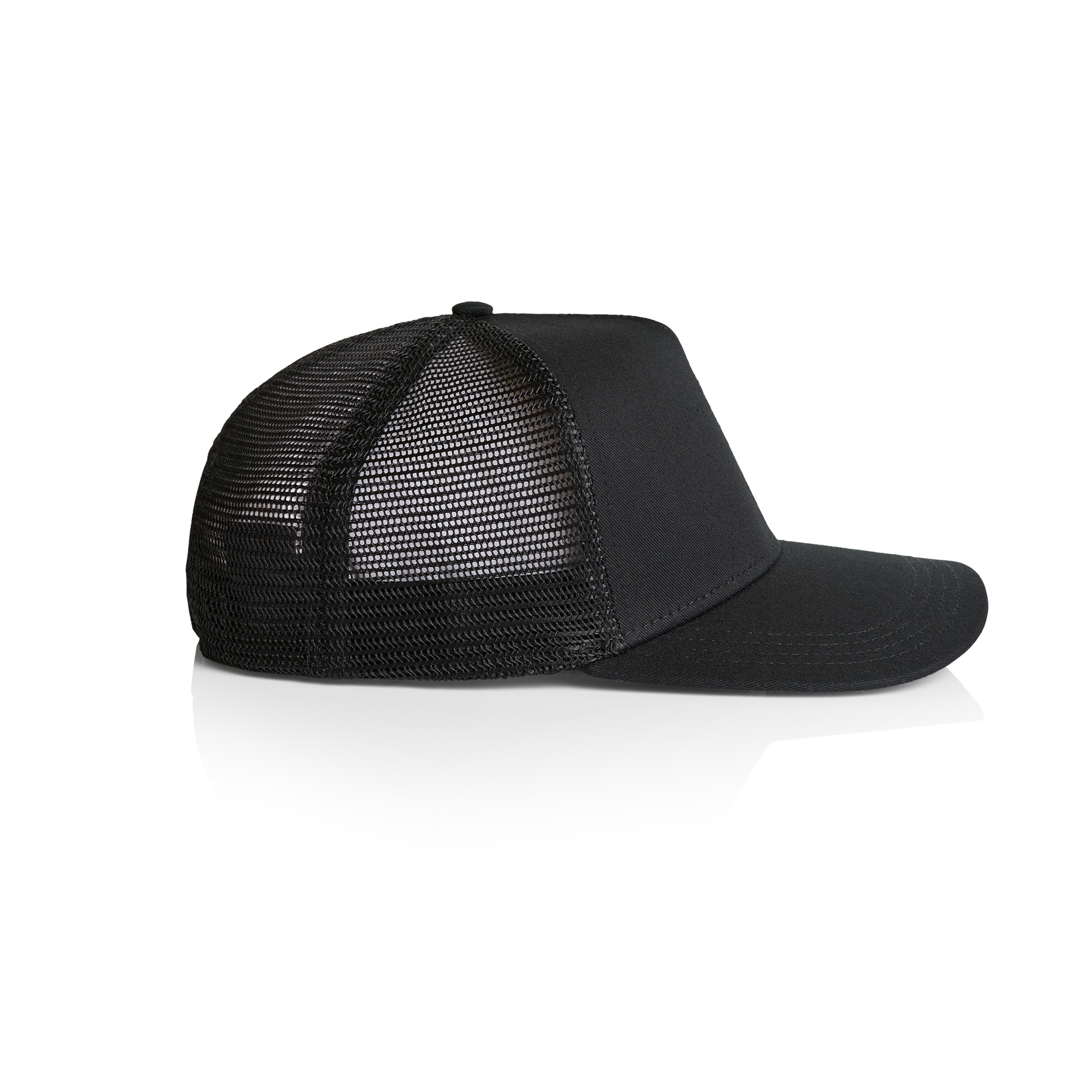 100% cotton front & peak, 100% recycled polyester mesh back
