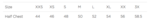 | Chest | 56 | 59 | 62 | 65 | 68 | 71 | 74 | 77 | 83 |