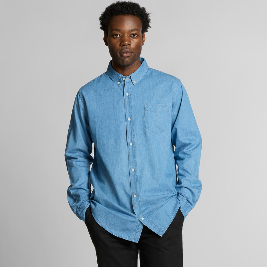 Long sleeve button up shirt, button-down collar, chest pocket, clear buttons, adjustable cuffs